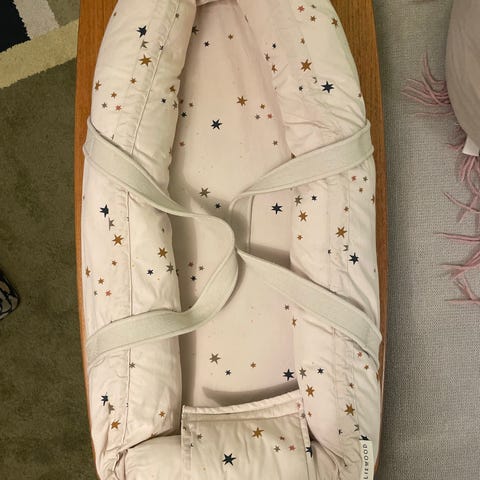 Liewoodin unipesä (Gro). Kantokahvojen ansiosta voit liikuttaa nukkuvaa vauvaa paikasta toiseen.