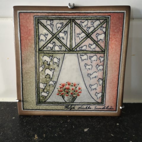 Seinälaatan koko 12x12 cm. Seinäkiinnitys puuttuu.