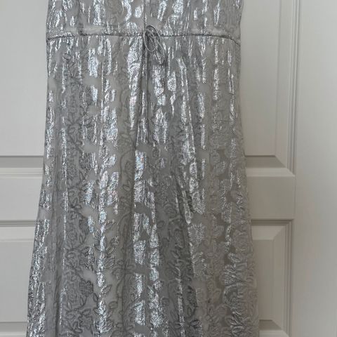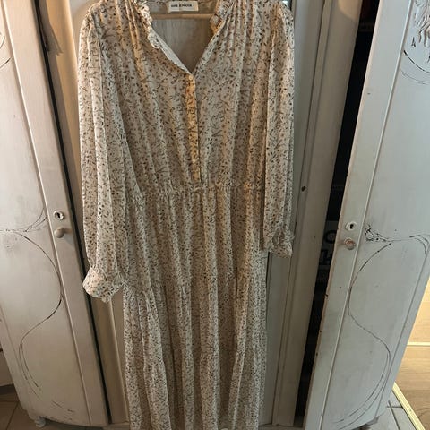 Myyn Sofie Schnoor maksimekon, koko XL. Vyötäröllä on kuminauha. Kiva, kevyt materiaali 80 % viskoosia ja 20 % polyamidia. Mekossa on 100 % viskoosivuori.