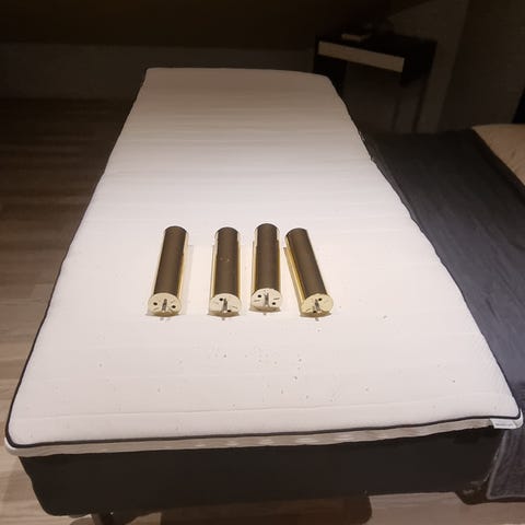 Sänky jolla on 2 laatikkoa ja ilman patjaa. Ikeasta ostettu