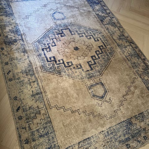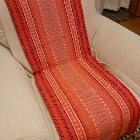 Myydään vanha vintage keinutuolin matto. Pituus hapsuineen 172 cm ja leveys 46,5 cm. sinisen ja liilan värinen. Oikea vanhanajan keinutuolin matto.