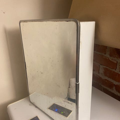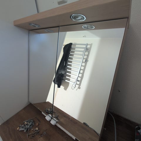 ALLIBERT peilikaappi valolla ja pistorasialla. Koko kork 64 ja lev 54. Väri luunvalkoinen. Täysin ehjä.
