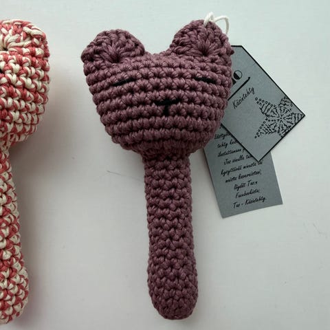 Toimitetaan Tao-Käsintehty tageilla ja pakattuna sellofaanipussiin. Käsin virkattu 100% puuvillalangasta, jolla öko-tex sertifikaatti, eli lanka on turvallista vauvalle. Täytteenä kulkunen rasiassa ja polyesterivanua.