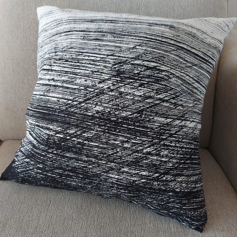 Ompelijalla Marimekon kankaasta teetätetyt tyynyliinat. Sisustusvärien muuttuessa jääneet käyttämättä. 2 kpl tyynyliinoja.