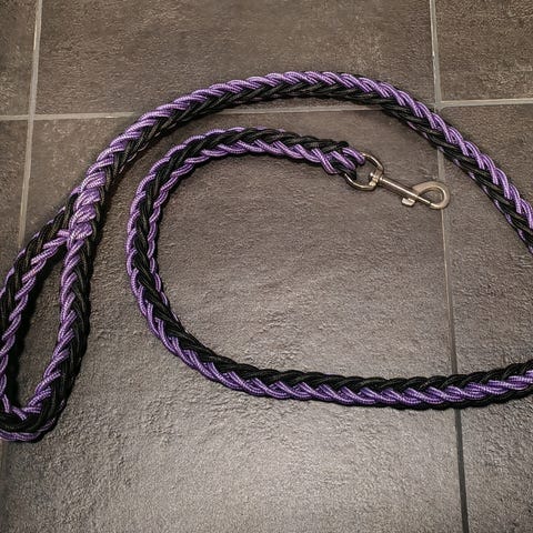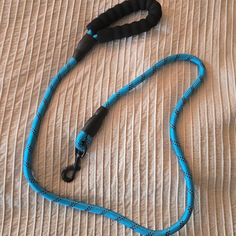 Koiran talutushihna, Väriltään neonvihreä mustilla yksityiskohdilla. Hihnassa on pehmustettu kädensija. Pituus noin 130 cm