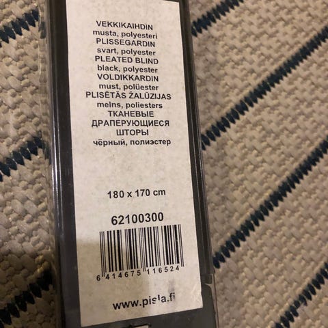 Myydään uusi Hemtexiltä ostettu Dekosol merkin laadukas Elena ylös alas vekkikaihdin. Mitat: 110 cm x 160 cm. Pakkaus avattu (epähuomiossa, samalla tajusin mitat meille väärät), mutta tuote yhä koskematon pakkauksessa, sinettejä ei avattu eli uusi on.
