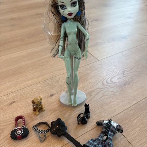 Nukke on erinomaisessa kunnossa, vain telineen pidike puuttuu.