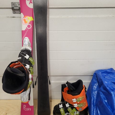 Käytetty hyväkuntoinen lasten laskettelupaketti. Sukset 90 cm ja monot 231 mm.