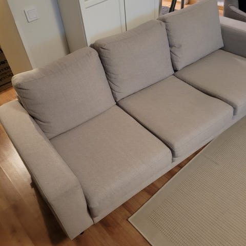 Käytetty 3 istuttava sohvassa vaalean beigen värisellä irtopäällisellä.