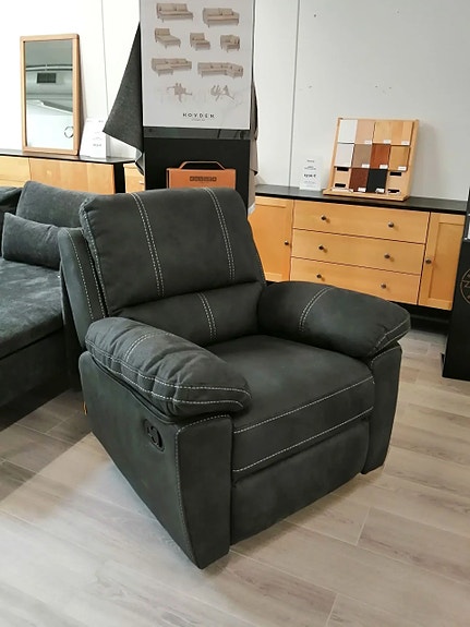 Sohvan kankaassa näkyy kulumaa.