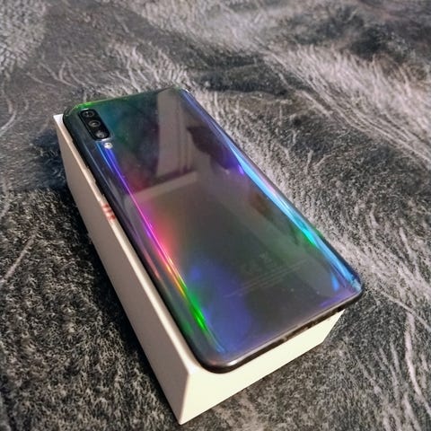Siisti ja täysin toimiva Samsung Galaxy A40 Android älypuhelin. Näppärä kompakti 5.8" näyttökoko. Dual-SIM. 64 Gt muistia. Väri valkoinen. Näyttö suojattu panssarilasilla.
