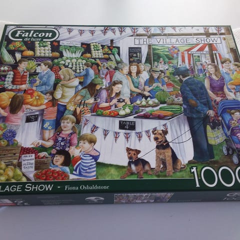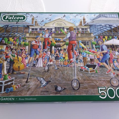 Falcon Looking Across The River -palapeli, jossa on 500 palaa. Kuvassa on jokimaisema sillan, veneiden ja rakennusten kanssa. Soveltuu palapeliharrastajille ja ajanviettoon kotona.