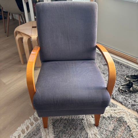 Iäkäs, mutta ehjä nojatuoli. Koti puhdas, homeeton ja eläimetön. Vain nouto, maksu haettaessa käteisellä.