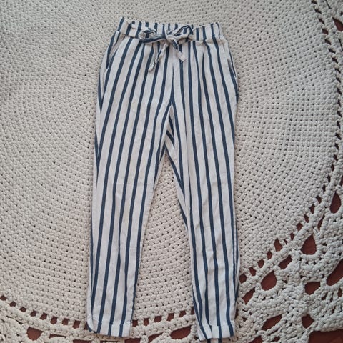 Ei lue kokoa varmaan xs/s vanhat housut. On nyppääntymää. Takapuolella feikit taskut