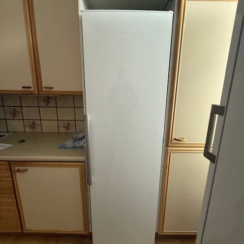 Uusi jääkaappi myynnissä. Ei sopinut meille. Uuden jääkaapin hinta kaupassa yli 400 e