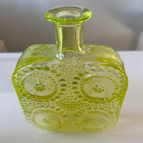 Riihimäen lasin sininen Grapponia pullo, suunnitellut Nanny Still.