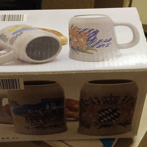 4 kpl Oktoberfest aiheisia keraamisia tuoppeja. Jokaisessa tuopissa eri motiivi. Yhteensä 30e.