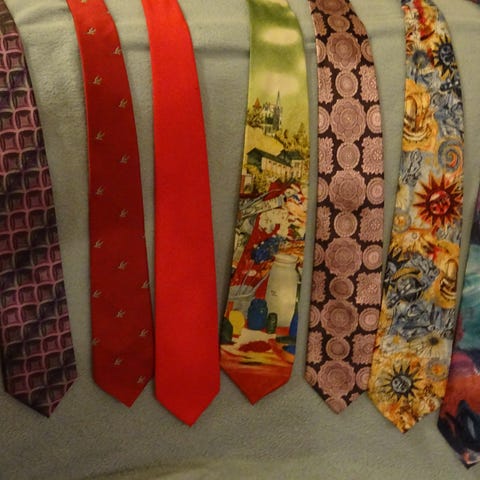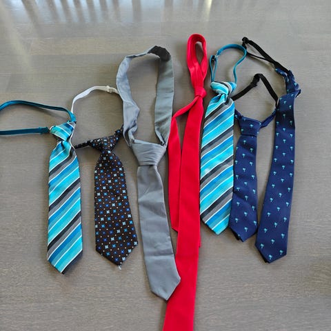 Miesten solmio, jossa useita erilaisia kuvioituja pintoja. Solmioissa on muun muassa eläinaiheisia, piirroshahmo- ja ruokakuvioita sekä raidallinen malli. Sopii käytettäväksi arki- ja juhlapukeutumisessa tuomaan asuun persoonallisen ilmeen.