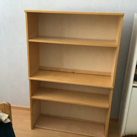 Täys kuusesta tehty kirjahyllyt ullakkoon. Vasen puolisen hyllyn korkeus matalampi puoli on 182cm, korkeampi puoli on 205cm, leveys 105cm, syvyys 30cm. Oikea puoline hyllyn korkeus matalampi puoli on 79cm, korkeampi puoli on 146cm, leveys ja syvyys on sama, kuin vasen puolisen hyllyn. Ostaja saa purkaa sen itse.