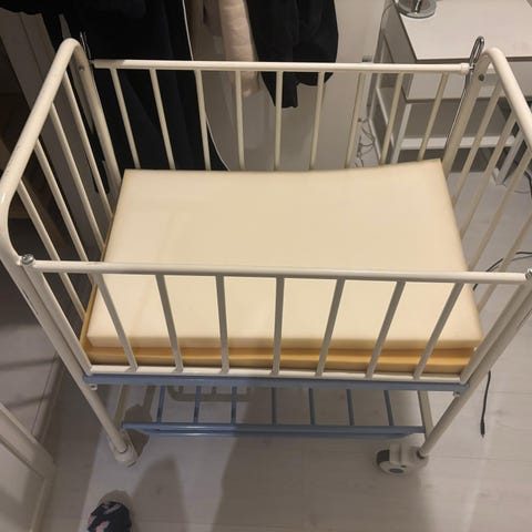 Moweo-merkkinen, kiva ja käytännöllinen sivuvaunusänky pehmeälla topatulla patjalla ja säilytyslaukulla. Toinen sängyn laidoista laskee alas ja sängyn korkeutta voi saataa viiteen eri tasoon. Kunto on erittäin hyvä, en ole löytänyt tahroja, kulumia tai muita merkkejä käytöstä.