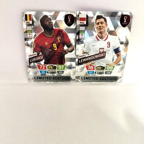 Panini Qatar 2022 jalkapallokortit Limited Edition Lukaku ja Lewandowski