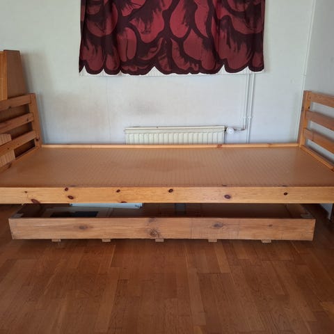 Askon Bonnell 120x200 cm sänky. Kulunut mutta käyttökelpoinen! Sängyn jalat saa helposti irti, melko kevyt kantaa. Sijaitsee ensimmäisessä kerroksessa ja olen mieluusti kantoapuna tarvittaessa. Jotexin valkoisen helmalakanan saa halutessaan mukaan:) Sopisi myös sunbediksi parvekkeelle! Vapaa tila lattian ja rungon välissä noin 15 cm joten alle saa säilytystilaa. Sängyn korkeus muuten noin 40 cm.