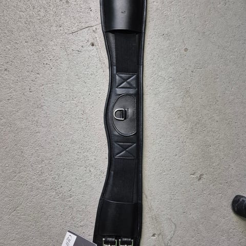 Musta nahkainen satulavyö. Pari kertaa käytetty. Nahka erittäin pehmeää. Koko 75cm. Mitat tarkemmin näkyvillä kuvissa.