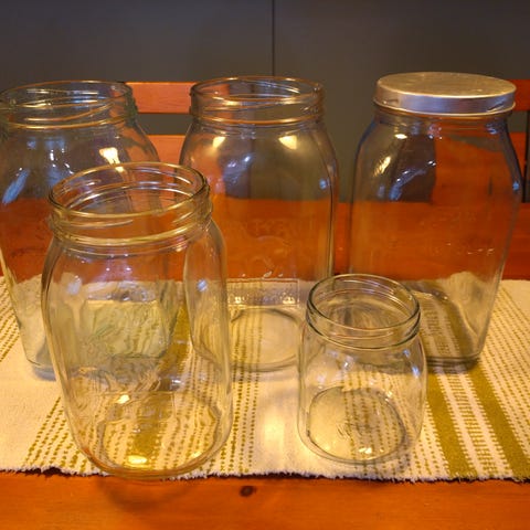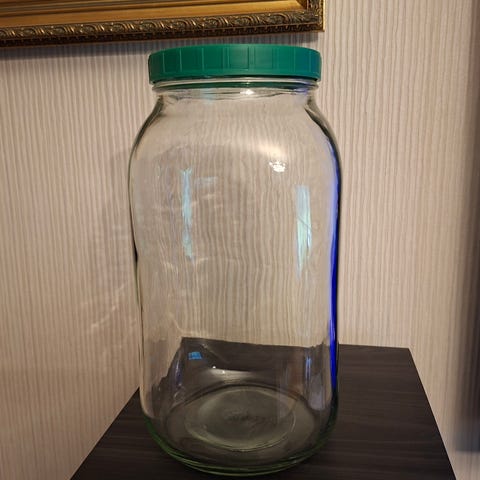 Riihijärven lasi Ilves -lasipurkit kansilla. 3 l ja 2 La. 3 l purkin kunto moitteeton, 2 l purkin suulla pieni särö, kannen sisäpuolella ruostetta.