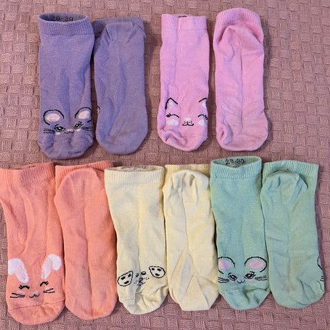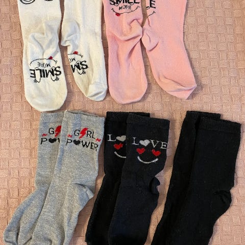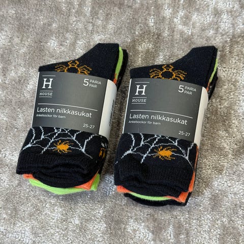 House lyhytvartiset sukat 25-27, kunto ok, joissakin (vaalenpunaiset ja vihreät) pohjissa tummentumaa/värjäymää. 5 paria.
