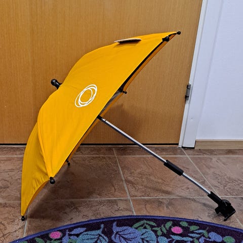 Bugaboo aurinkovarjo, musta. Paljon säätömahdollisuuksia ja kätevä kasata.