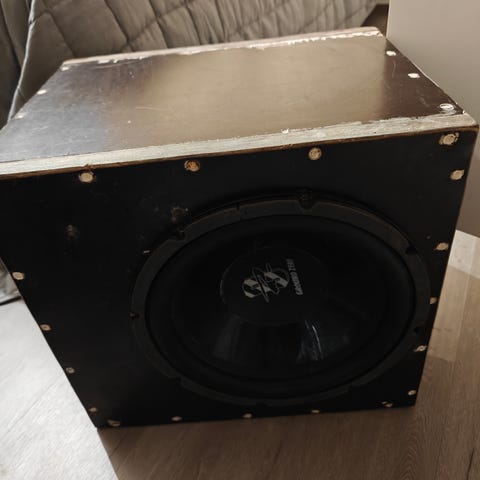 Ground Zeron 12" tehdaskoteloitu subbari todella litteässä kotelossa. Menee hyvin vaikka takapenkin taakse eikä vie tilaa kontista.