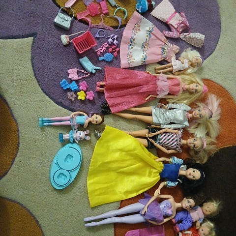 Myydään 15kpl barbeja. Lähes kaikki aitoja Mattel nukkeja. Muutamat vaihtovaatteet mukaan. Kunto vaihteleva.