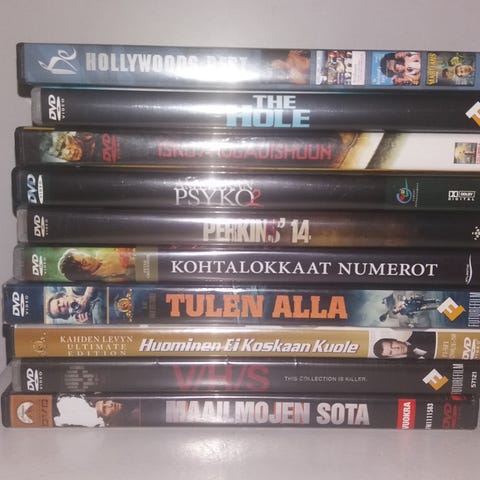 Yli 100 elokuvaa kerralla myyntiin. Löytyy elokuvia ja sarjoja laidasta laitaan. Seassa myös lasten elokuvia.