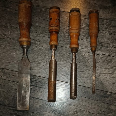 Myydään kuvanmukaiset vanhat taltat kaikki kerralla 13kpl. terä Lev. 15-40mm Hakusana. Puutyöt. Puusepät. Keräilyyn. vanhat työkalut rompetori pk.suomi. Voi myös tarjota.