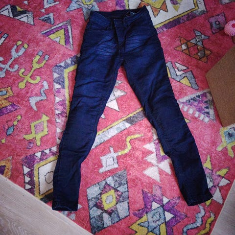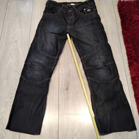 Miesten Held-merkkiset ajofarkut polvisuojauksilla, jotka irroitettavissa ja säädettävissä. Kantapäiden kohdalla hieman kulumaa, muutoin hyväkuntoiset.