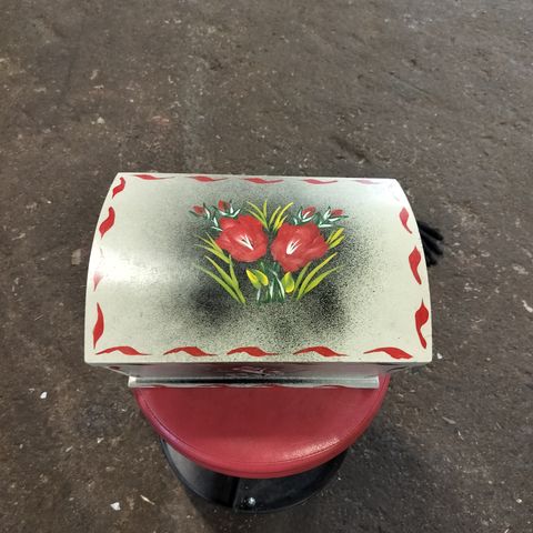 Myynnissä säilytysarkku, maalipinta kulunut.