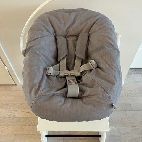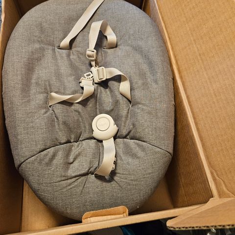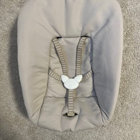 Stokke syöttötuolin vauvan istuinosa. Pehmustettu vaaleanbeige istuin, jossa turvavyöt. Mukana istuimeen kiinnitettävä lelukaari. Sopii käytettäväksi vauvan kanssa Stokke-syöttötuolin päällä valmistajan ohjeiden mukaisesti. Näitä myynnissä 2kpl, yhden hinta 55€, yhdessä 100€.