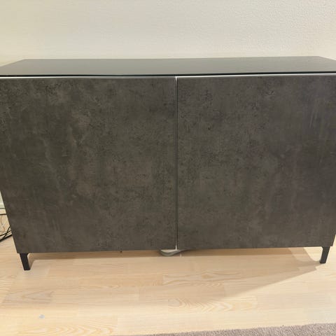 Siisti senkki, koostuu 2 osasta, 60 ja 120cm leveistä paloista, stubbarb jalat, korkeakiilto valkoiset ovet ja tummanharmaa lasikansi.