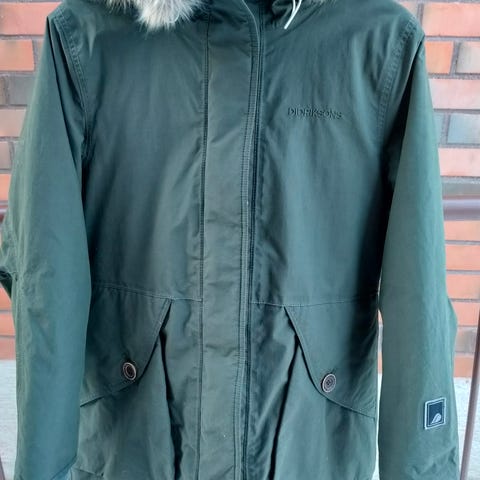 Didriksons Frida Wns Parka 2 naisten takki. Koko 40 ja väri musta. Parkamallinen ulkotakki, jossa paljon käytännöllisiä taskuja. Toisen Napoelon-taskun vetoketju rikki. Ollut aktiivisessa käytössä lähes 10 vuotta, kuitenkin siistissä kunnossa. Myydään uuden takin tieltä.