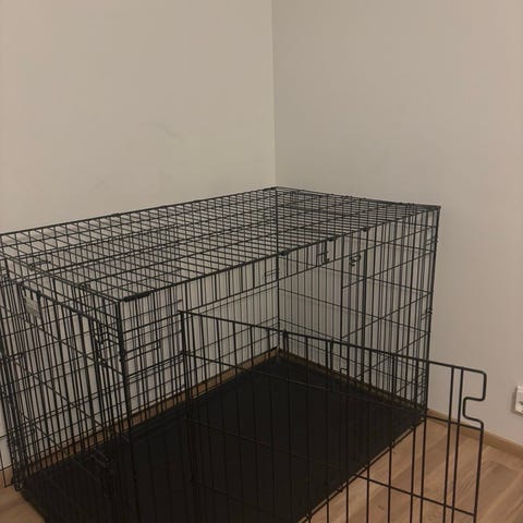 Hyväkuntoinen kevyt iso koiran häkki, ostettu Peten koiratarvike. Mukaan ylimääräinen patja, jonka kankaassa viilto.
