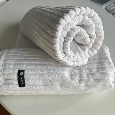 Kaksi viininpunaista Luhdan aalto kylpypyyhettä, pyyhkeen koko 70x140cm.