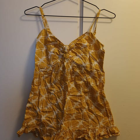 Kaunis hyväkuntoinen Your Face toppi. Ilmava kevyt materiaali, edessä kerroksia. Koko 36, mitat kaikai 49 cm ja olkahelma 60 cm. Nouto Oulu tai postit lisätään.