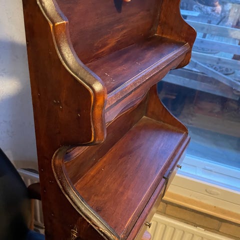 Myydään puinen hyllykkö hyvässä kunnossa.