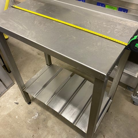 Rst- pöytä 60x 300 cm. Lihan , kalan ym leikkuuseen tai Ravintolan keittiöön. Tämä löytyy Rovaniemeltä . Risto