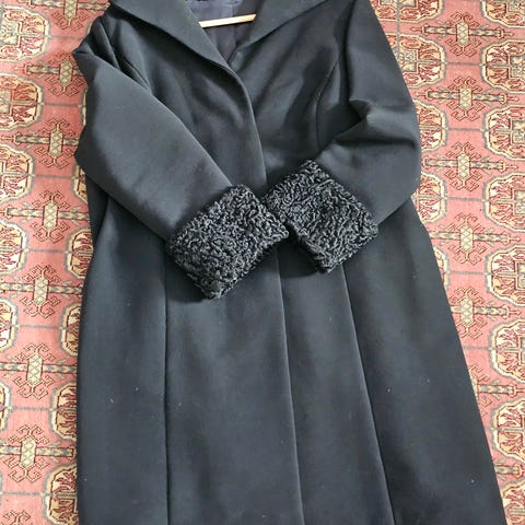 Kerran käytetty laadukas lämmin isolla keinoturkis kauluksella villakangastakki. Koko näyttää 40, mutta on reilu, pituus olka- helma 135cm, kai- kai 64cm