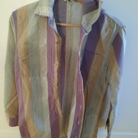 Olka-helma 56 cm, kainalo-kainalo 45 cm (vyötäröstä hieman kapeampi), 3/4 hihat.