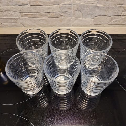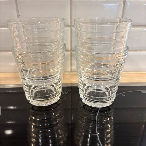 3 kpl Iittalan Aino Aalto juomalaseja 22cl. Kirkas lasi. Ehjät mutta käytön jälkiä näkyy reippaasti.