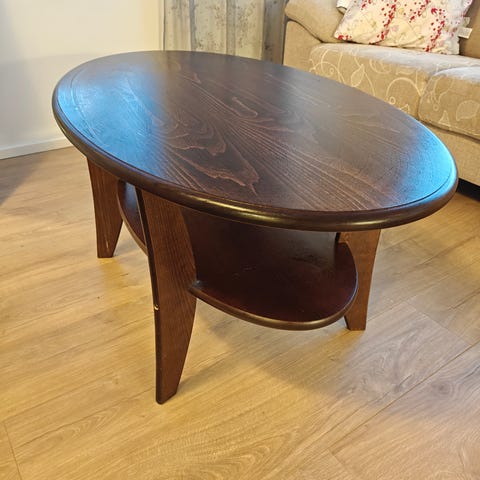 Siisti pöytä, pieni lähes huomaamaton vekki pinnassa pöydän sivussa. Pöytä halkaisijaltaan 80cm. NOPEA NOUTO MUUTON TIELTÄ!
