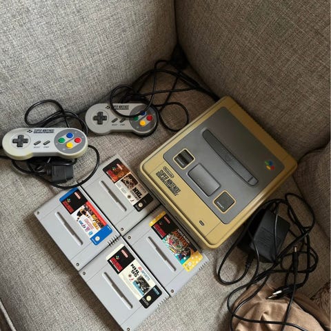 Myydään toimiva super nintendo pelikonsoli. Mukana adapteri jolla konsolin voi yhdistää uudempaan telkkariin. Pakettiin sisältyy myös 3 ohjainta 1 alkuperäinen ja 2 tarvikeohjainta, tarvikevirtajohto ja nhl96 peli.