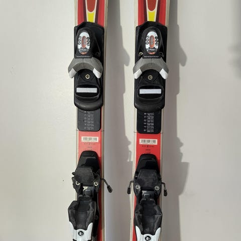 Rossignol Radical lasten laskettelusukset integroiduilla siteillä. Sukset ovat väriltään punavalkoiset ja niissä on Rossignolin omat säädettävät siteet. Sopivat rinteessä laskemiseen aloitteleville ja hieman kokeneemmille lapsilaskijoille.